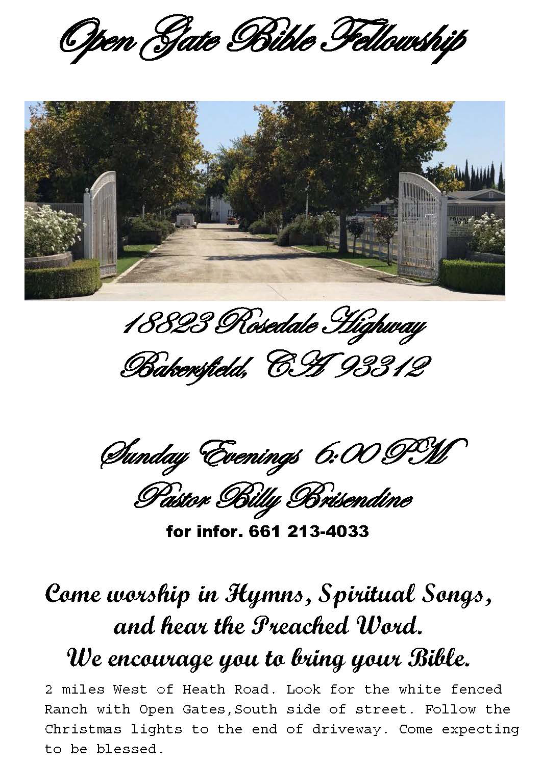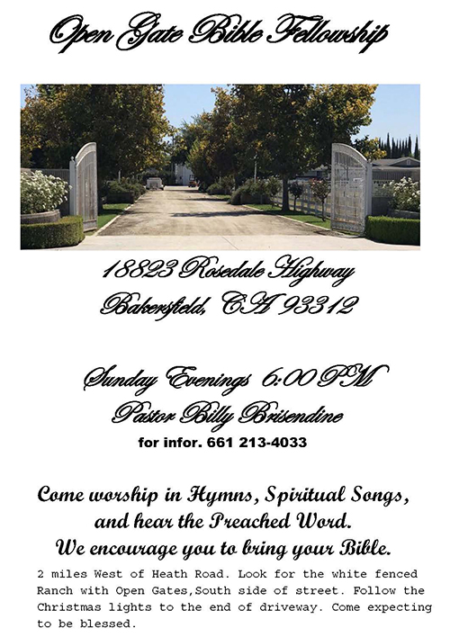CLICK HERE TO SEE VIDEOS OF BILLY PREACHING AND SINGING AT OPEN GATE BIBLE FELLOWSHIP